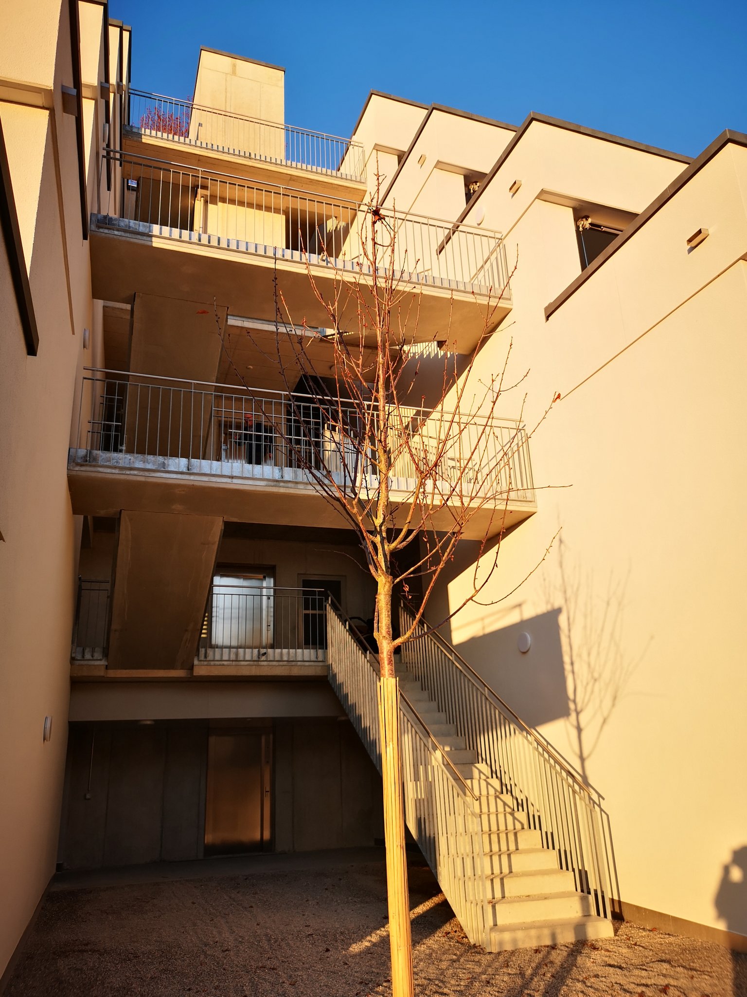 Sanierung der 10 Wohnungen und Anbau eines Balkons sowie Einbau eines Liftes im Treppenhaus.